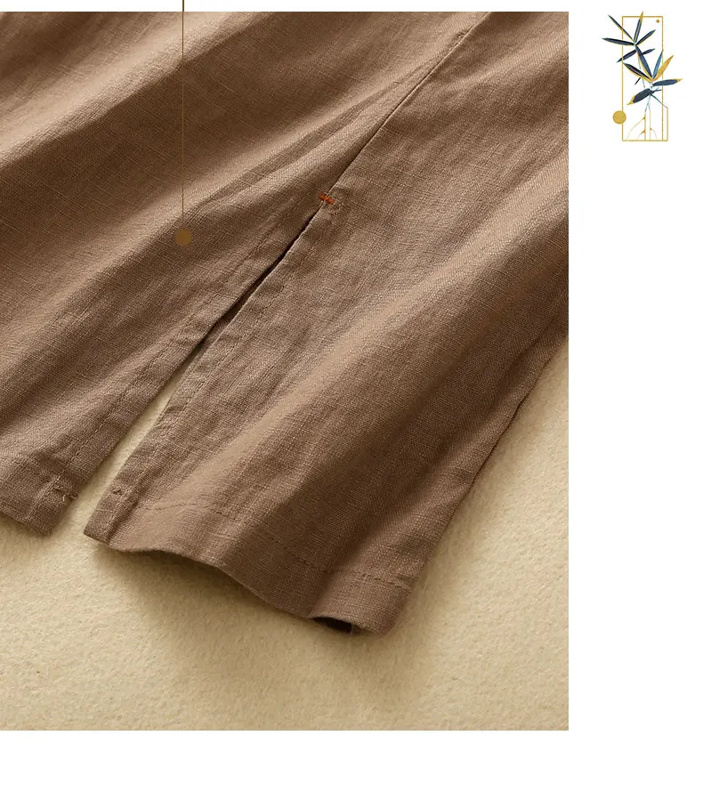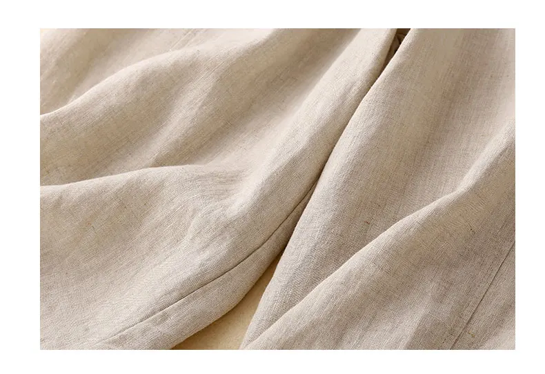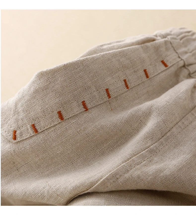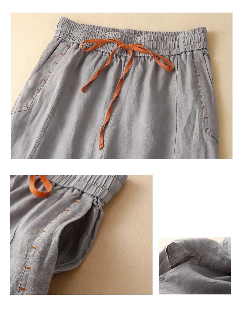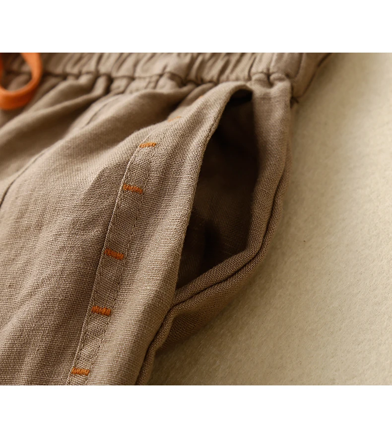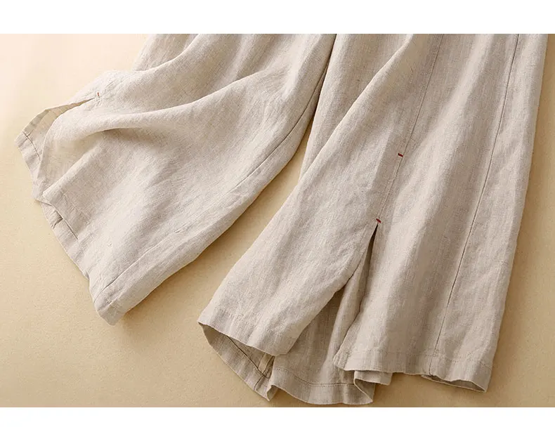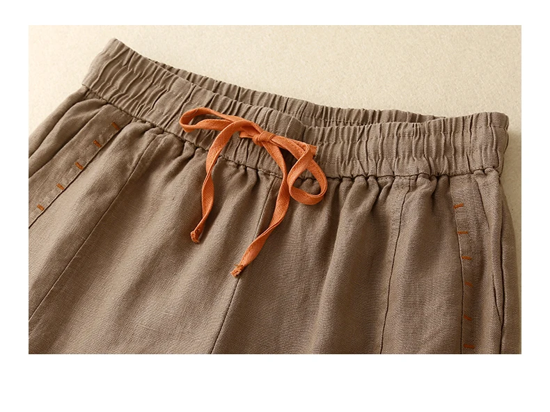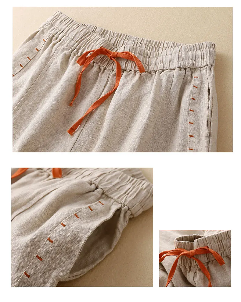 Beige Cotton Linen Casual Elastic High Waist Loose Wide Leg Women's Pants Ankle-Length Pants For Women Clothing 2024 Fashion