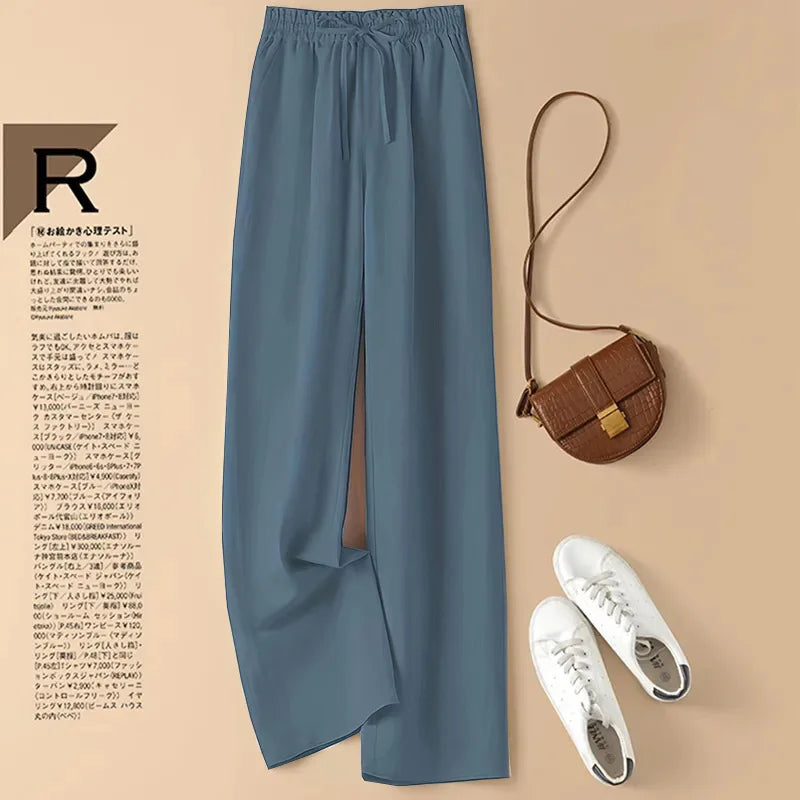 Cotton Linen Casual Wide Leg Pants Women's Summer Fashin Elastic Waist Solid Color Simple Basic Straight Trouser Female Clothes