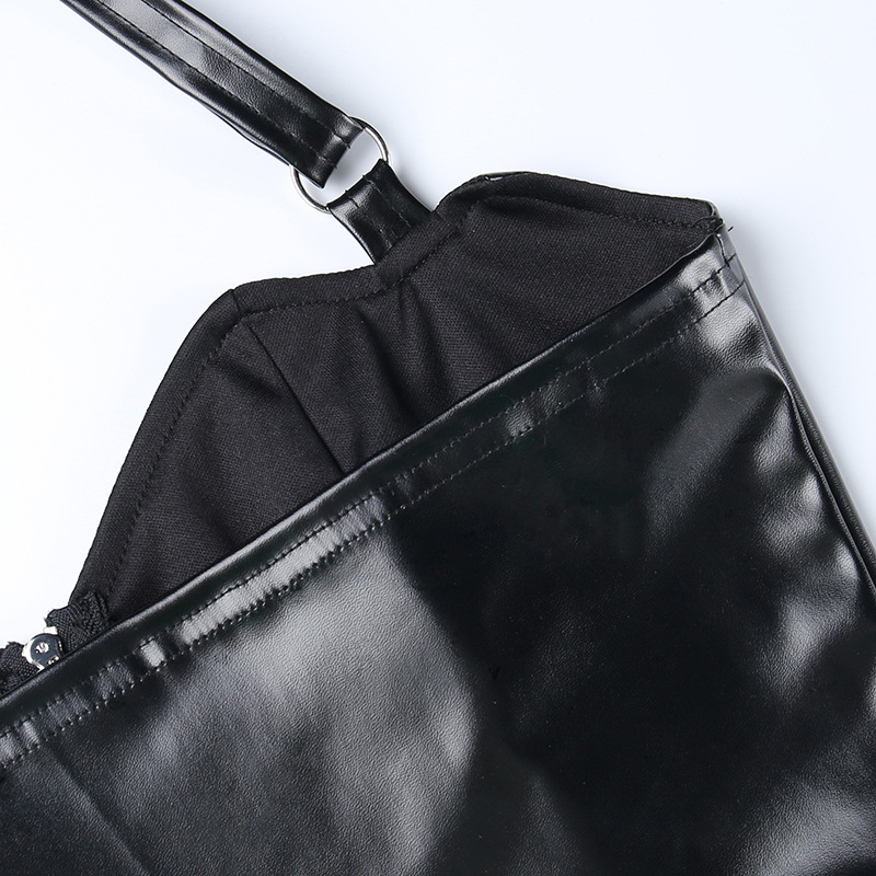 Gothic Y2K Halter Bat Aesthetic Summer Women Tops Streetwear Fashion Black Sleeveless Camis Grunge Punk PU Set Tank Top