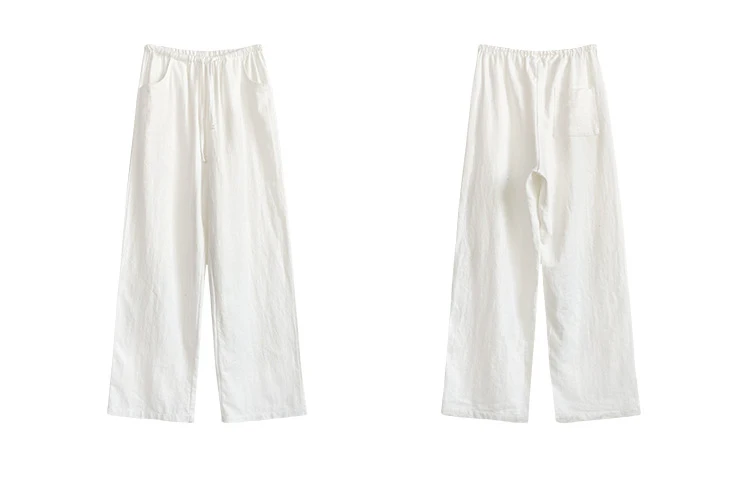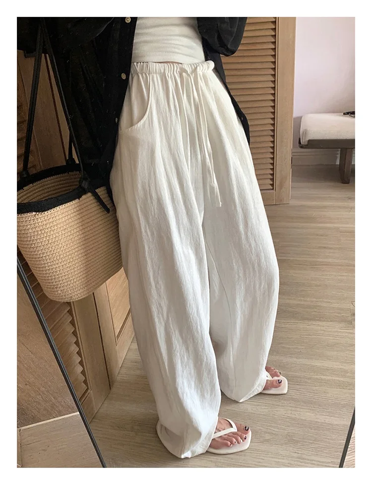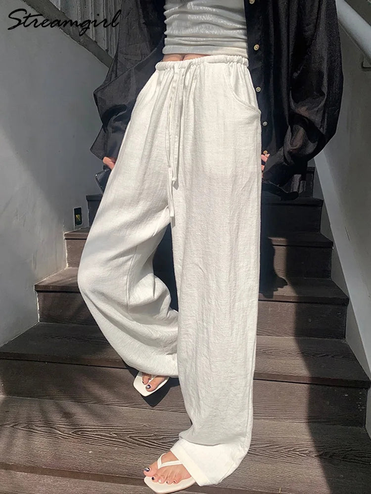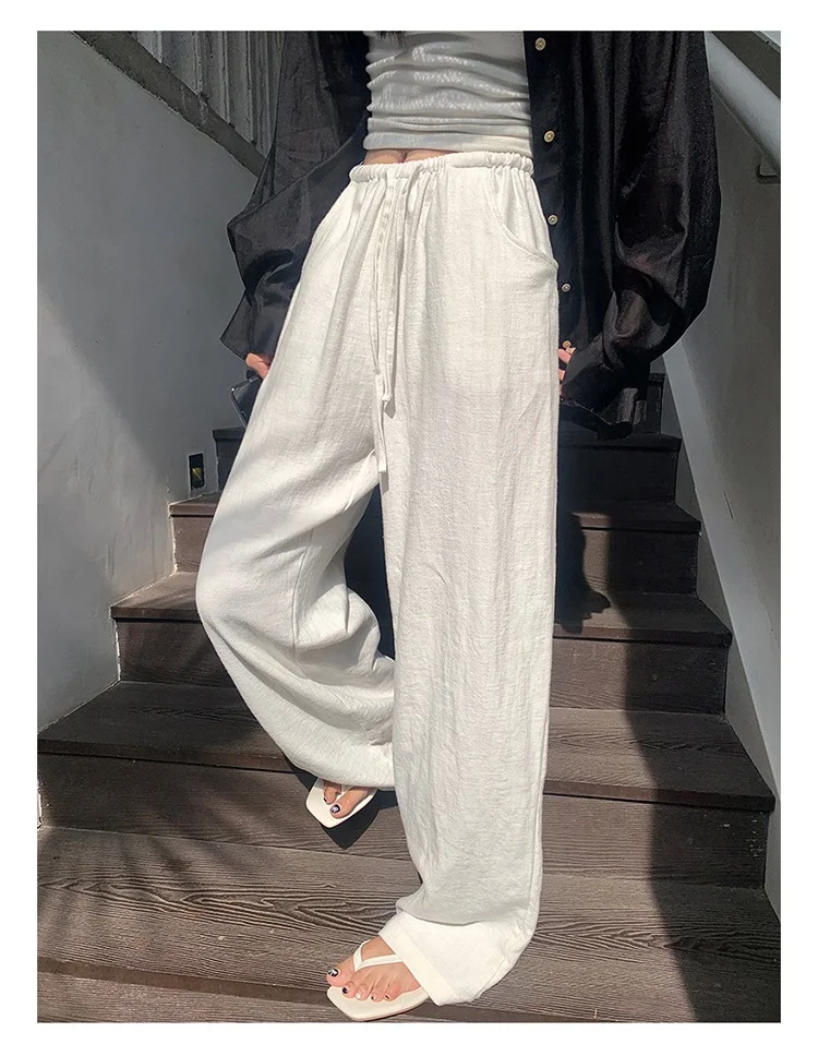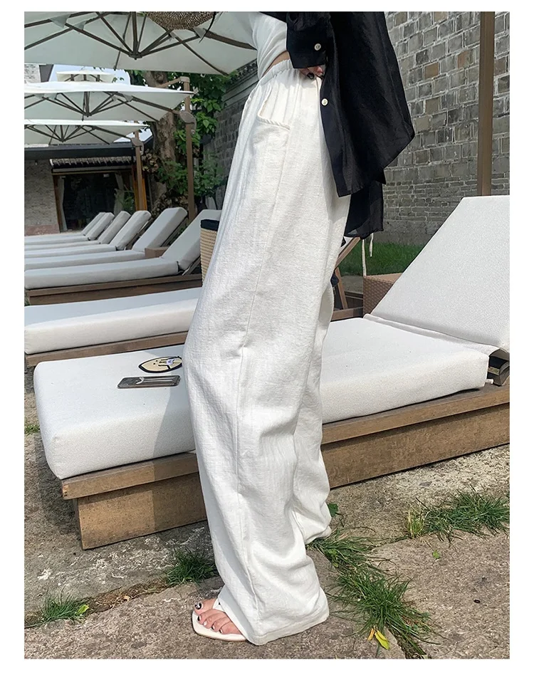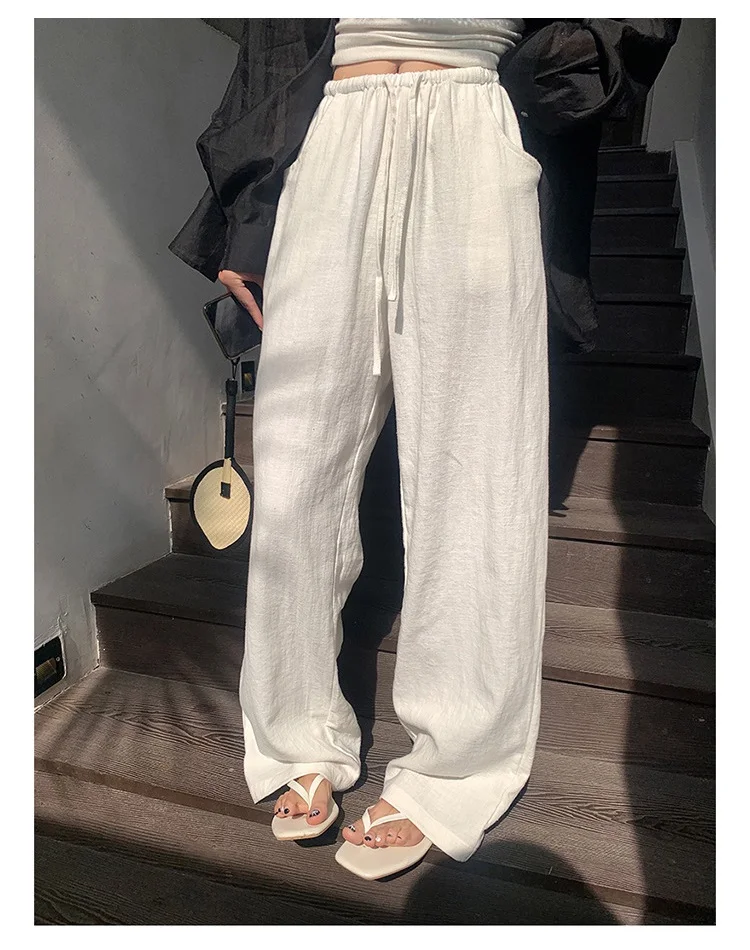 White Cotton Linen Pants Women Wide Leg Basic Summer Trousers Cotton Thin High Waist Loose Straight Women Pants Summer 2025