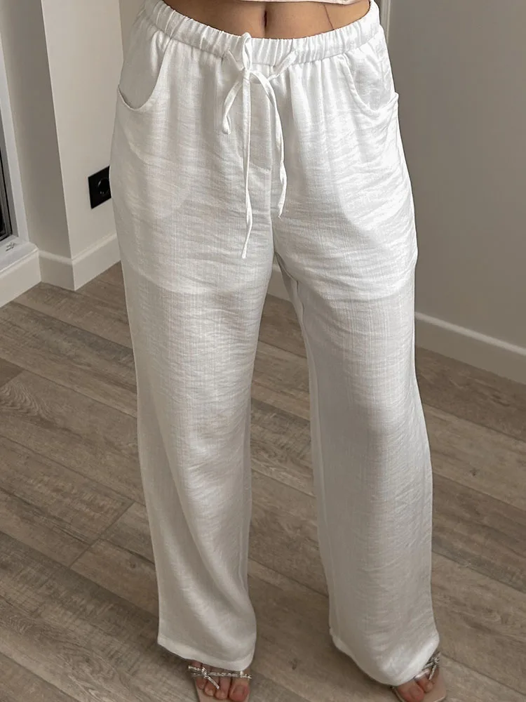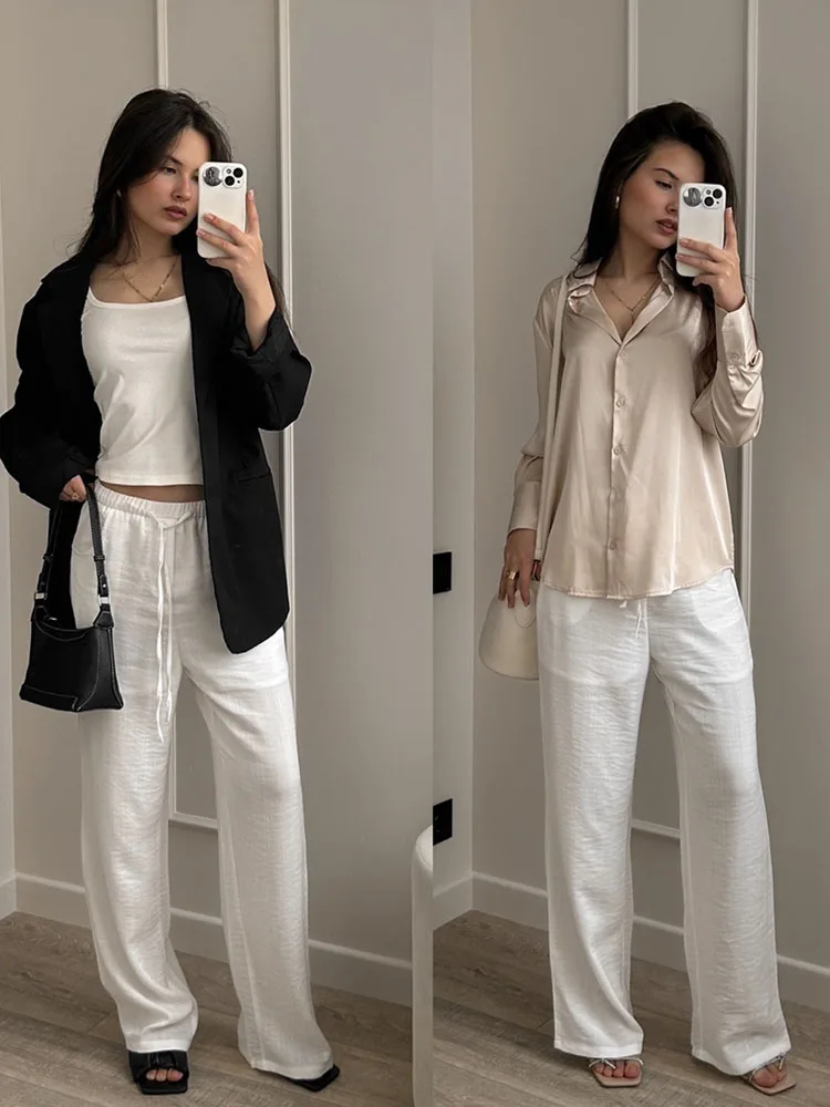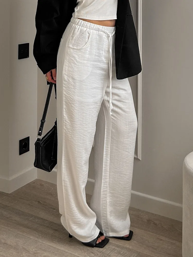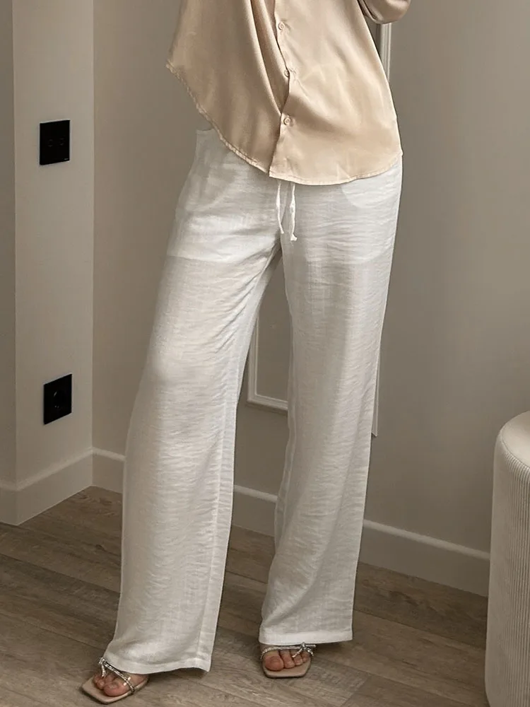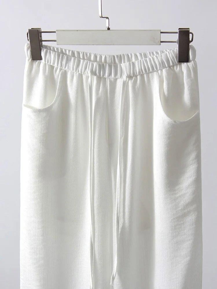 White Cotton Linen Pants Women Wide Leg Basic Summer Trousers Cotton Thin High Waist Loose Straight Women Pants Summer 2025